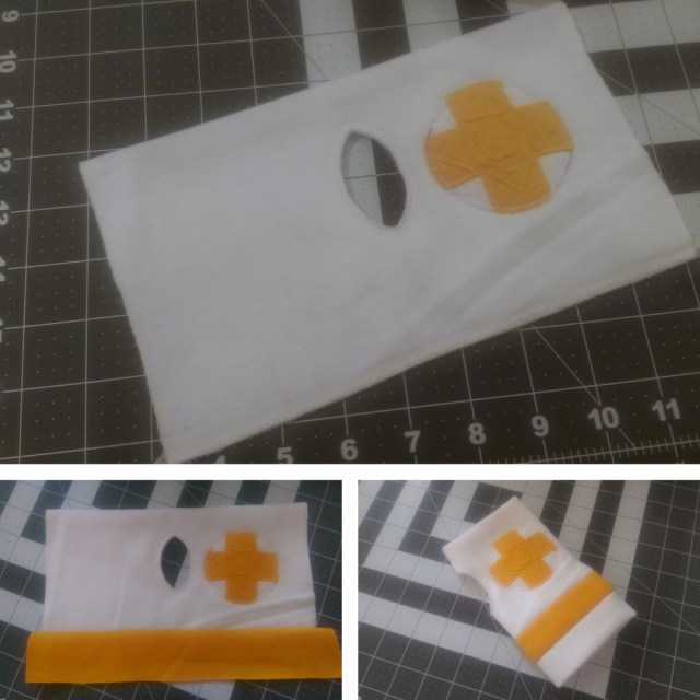 As a side-note, the fabric I used happened to be really shiny on the front side. To avoid assaulting photographers with shine during conventions, I opted to use the back side of the fabric (same color, but without the sheen!)