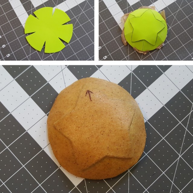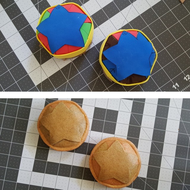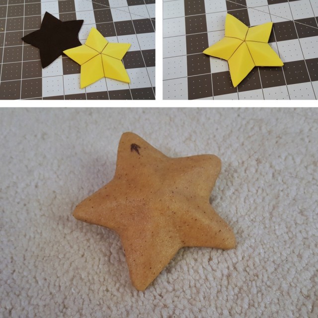 The star buckle for the belt was made from craft foam with the creases scored with a knife. The craft foam was then slowly massaged into shape along the scored creases.