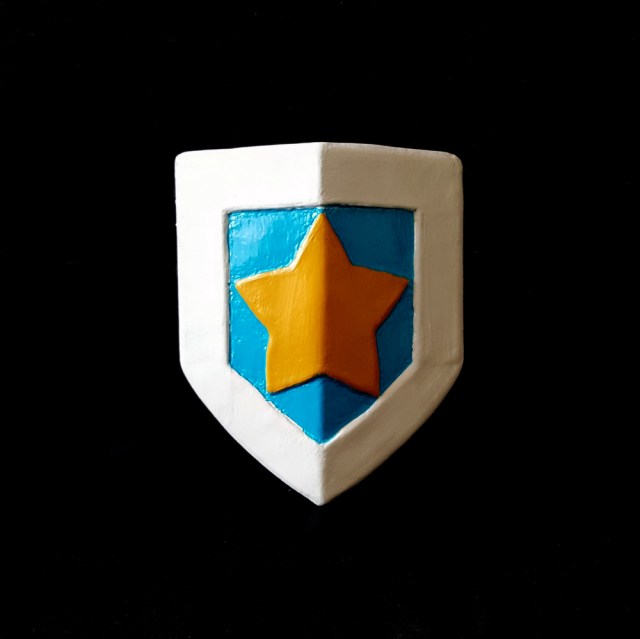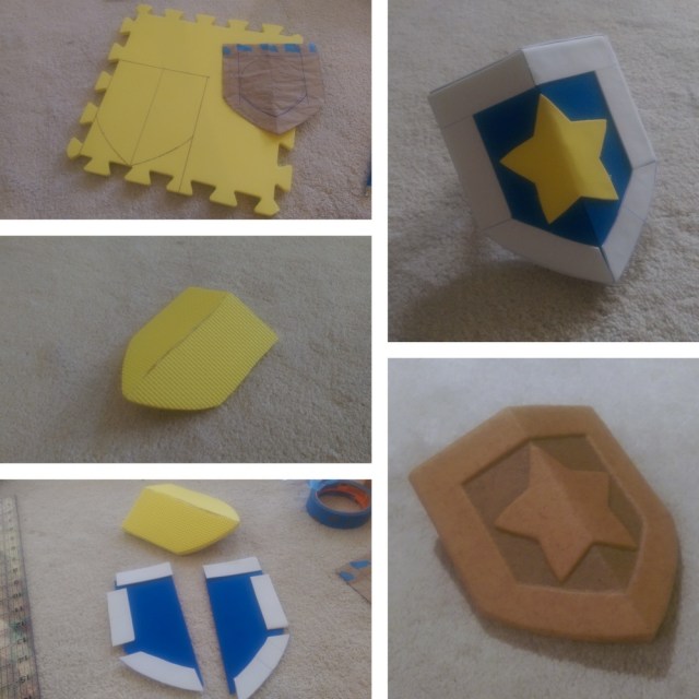 - Armor – Helm, Pauldron, Star, Knee Pad (EVA foam sheets, craft foam, Worbla, Gesso, spray paint)