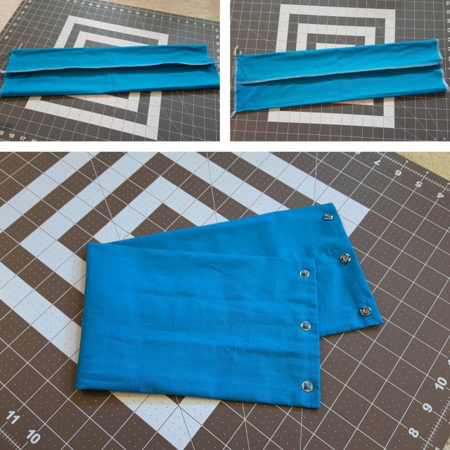 - Scarf (medium blue Kona cotton, snaps)