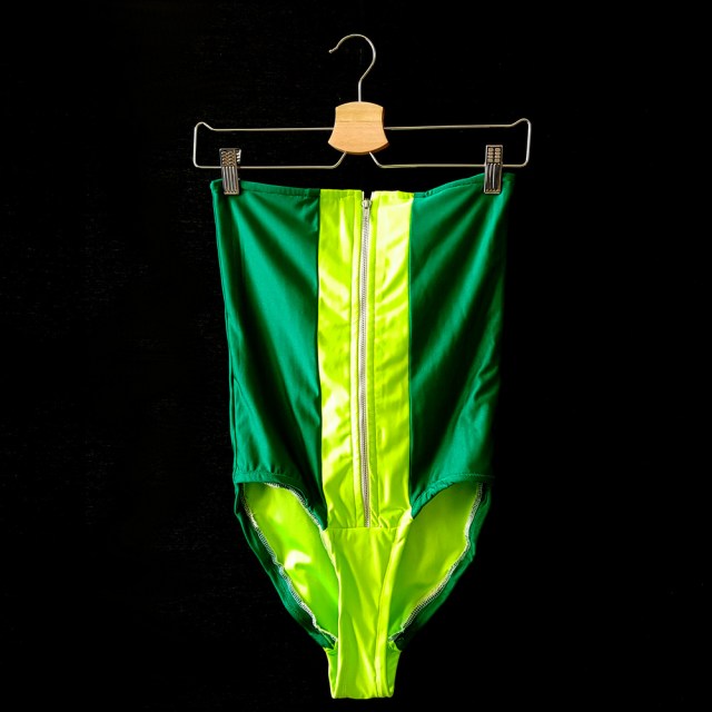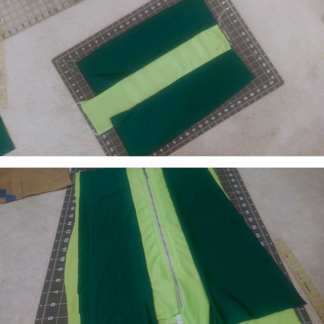- Zip-Front Top (dark and light green dance/swim knit, light interfacing, zipper)
