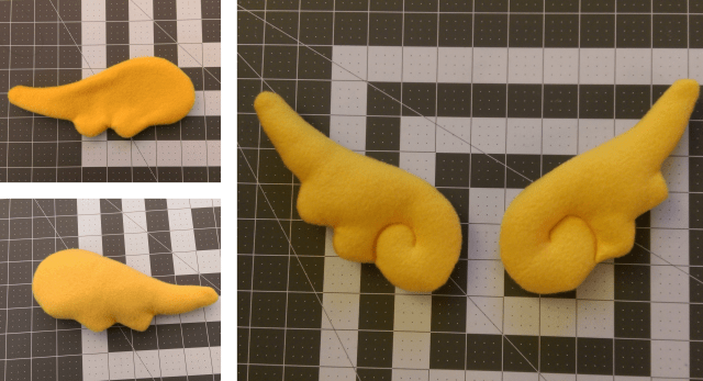 Sewing the wings was actually somewhat fun. I ended up sewing the spirals on by hand (I was a little too paranoid to shove a plush yellow dinosaur into my sewing machine) but it was oddly satisfying.
