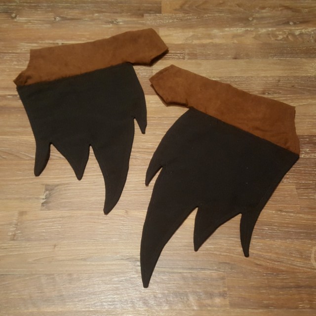 The arm wings (I’m… not 100% what to call these) were sketched on paper, converted to fabric, and then sewed directly over the seam of the gloves! To keep the gloves in place, I sewed very small hair elastics into both gloves as finger loops.