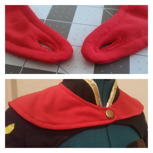 For ease of wearing, I had the cape attach to the top using a button.